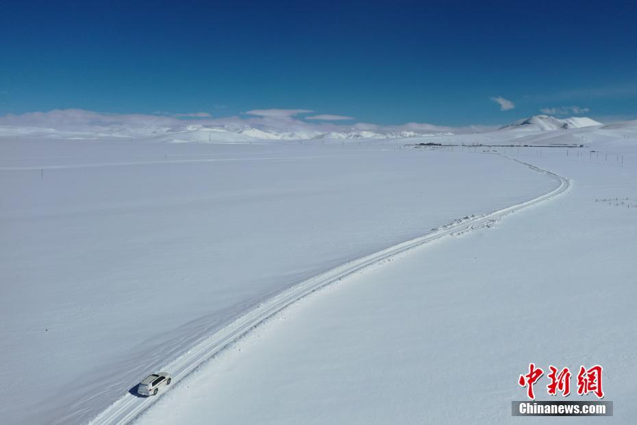 1月25日拍攝的納木錯(cuò)雪景。雪后的西藏納木錯(cuò)銀裝素裹,美景如畫。(無人機(jī)照片) 中新記者 貢嘎來松 攝