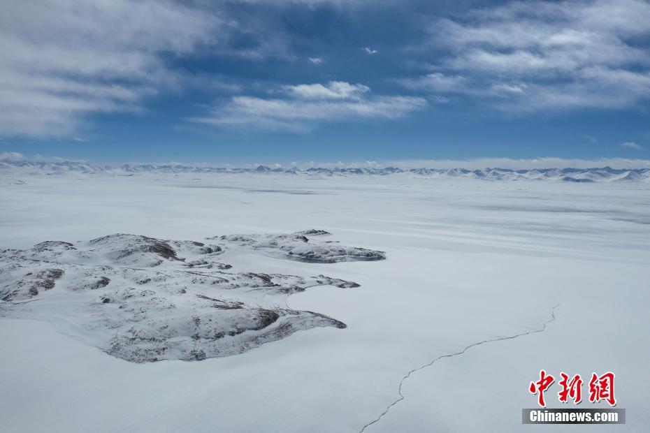 1月26日,納木錯(cuò)雪景。雪后的西藏納木錯(cuò)銀裝素裹,美景如畫。(無人機(jī)照片) 中新社記者 貢嘎來松 攝