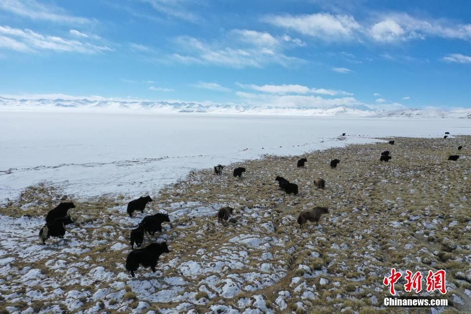 1月26日,牧民在納木錯(cuò)湖邊放牧。雪后的西藏納木錯(cuò)銀裝素裹,美景如畫。 中新社記者 貢嘎來松 攝