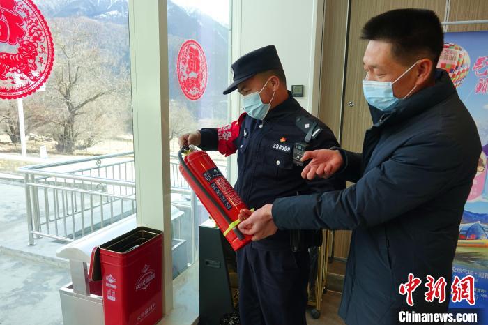 派邊境派出所民警在轄區(qū)內酒店檢查消防設施?!∪轿木?攝