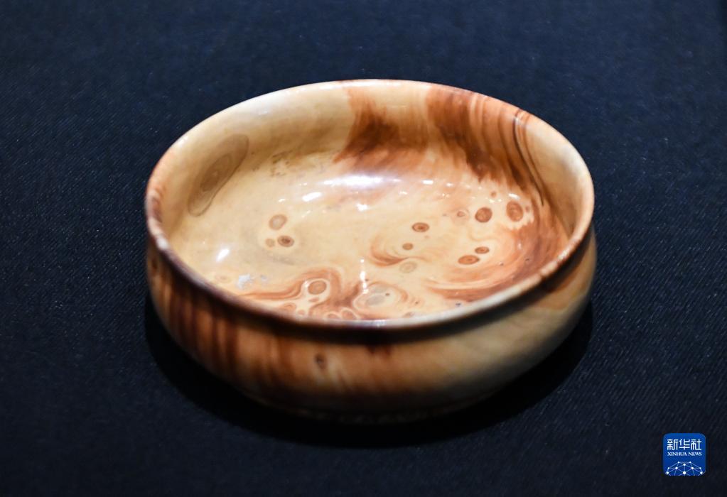 這是7月8日拍攝的西藏博物館新館展品——清乾隆時(shí)期的仿木紋釉碗。新華社記者 晉美多吉 攝