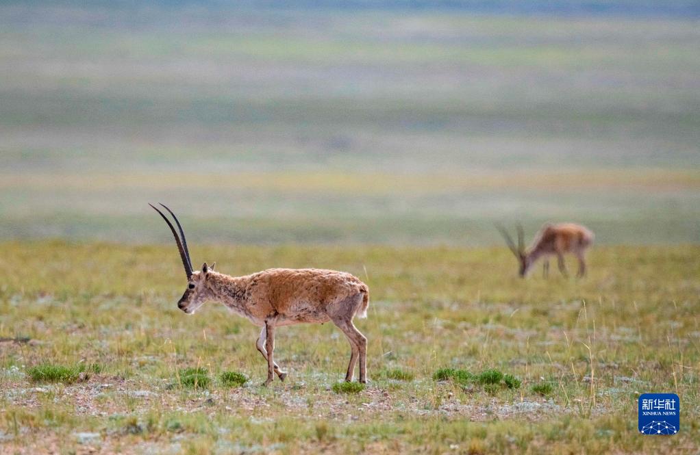 這是在羌塘國(guó)家級(jí)自然保護(hù)區(qū)內(nèi)拍攝的藏羚羊(7月11日攝)。新華社記者 周荻瀟 攝