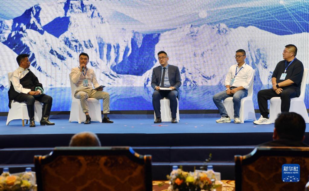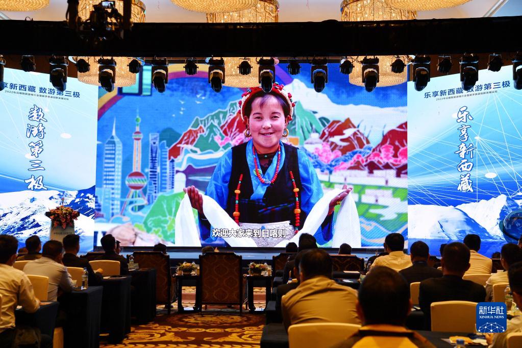 在2022年西藏日喀則旅游推介會暨數(shù)字旅游創(chuàng)新發(fā)展論壇上,國內(nèi)業(yè)界人士就數(shù)字文旅和日喀則旅游數(shù)字化發(fā)展前景進行主題演講和對話(7月15日攝)。新華社記者 張汝鋒 攝