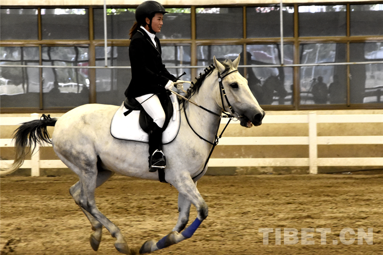 圖為7月15日競技馬術項目盛裝舞步比賽現(xiàn)場 攝影:德吉卓嘎