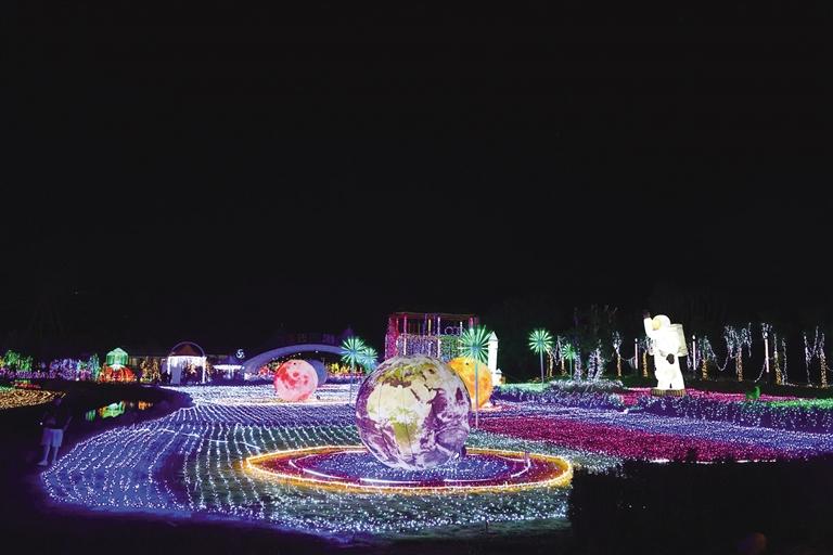 象雄美朵首屆國(guó)潮光影秀分為星際迷航、迷霧森林、遇見(jiàn)·螢火之光、激情北極光、時(shí)光隧道五個(gè)板塊。隨著彩燈亮起,星辰、太空人、火箭、綠森林、花海、孔雀等景觀清晰地展現(xiàn)在大家面前,通過(guò)藝術(shù)與科技巧妙地結(jié)合,立體呈現(xiàn)各種自然場(chǎng)景。