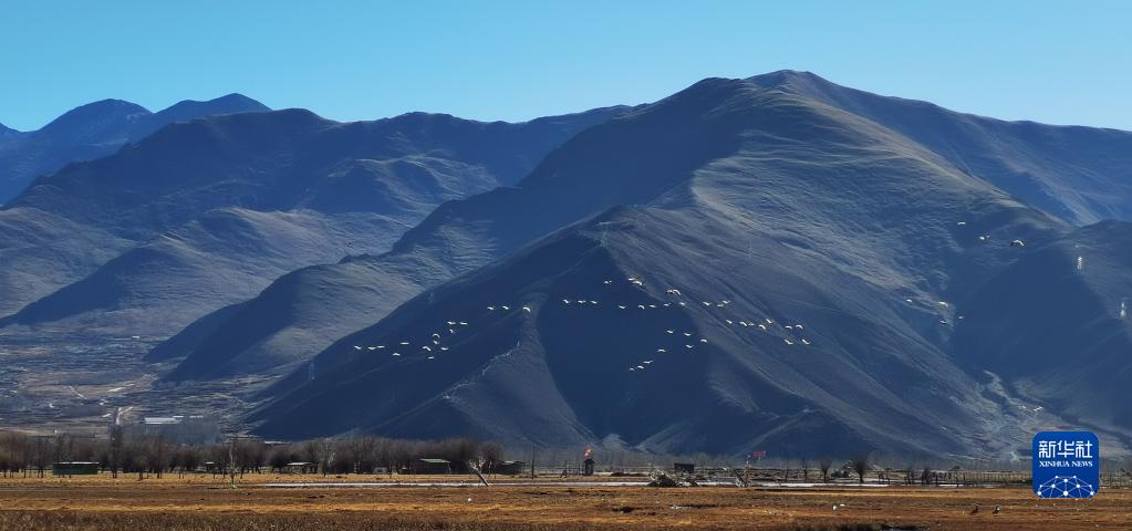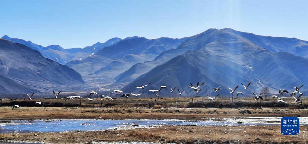 唐嘎鄉(xiāng)位于拉薩市達孜區(qū)東北部,這里每年冬季都會迎來黑頸鶴、斑頭雁、赤麻鴨等候鳥。這些珍稀鳥類時而在空中盤旋,時而棲息在水邊,營造出一幅生機盎然的冬季畫卷。