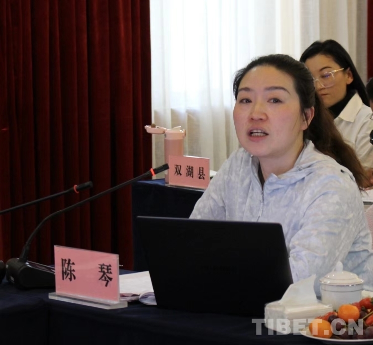 圖為中央廣播電視總臺駐西藏記者站黨委副書記、副召集人陳琴介紹融媒體相關情況