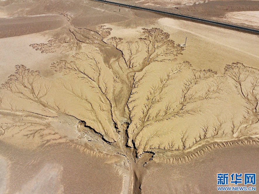 這是4月8日拍攝的位于阿里地區(qū)改則縣的“大地之樹”景觀(無(wú)人機(jī)照片)。 新華網(wǎng)發(fā) 曹枝清 攝