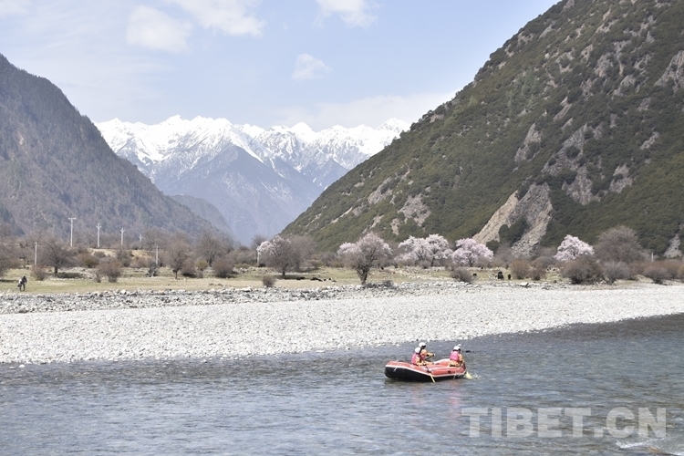 圖為4月16日,2.1公里激流漂流筏繞標(biāo)賽比賽現(xiàn)場攝影:次旦拉姆