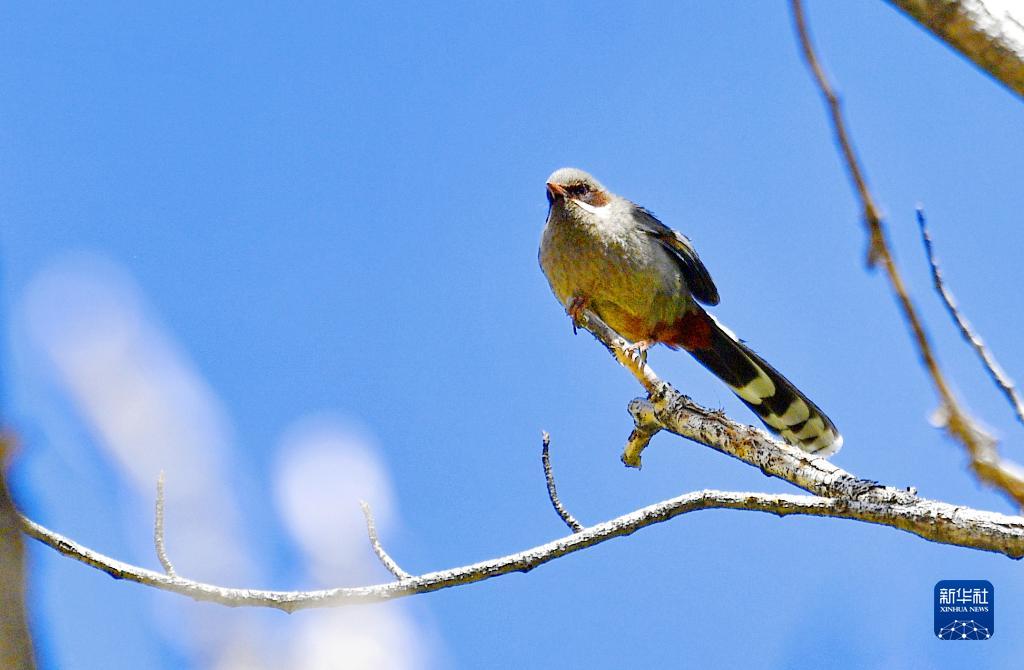 這是在拉薩市城關區(qū)蔡公堂街道次角林村拍攝的灰腹噪鹛(5月14日攝)。新華社記者 張汝鋒 攝