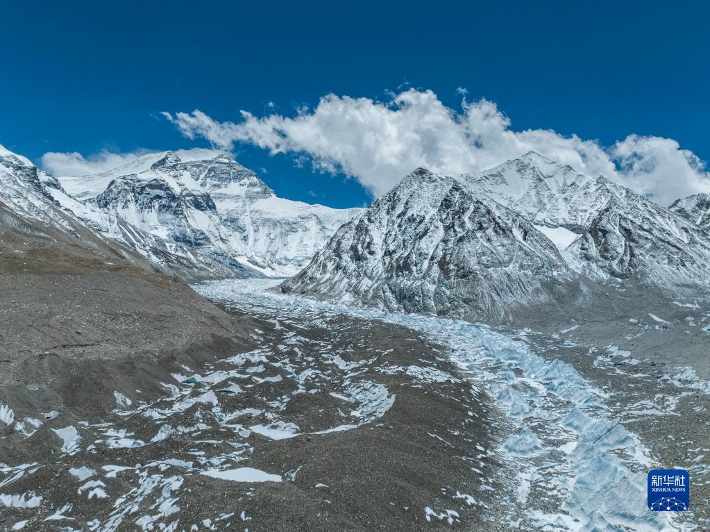 這是珠峰腳下的中絨布冰川(5月15日攝,無人機(jī)照片)。新華社記者 孫非 攝