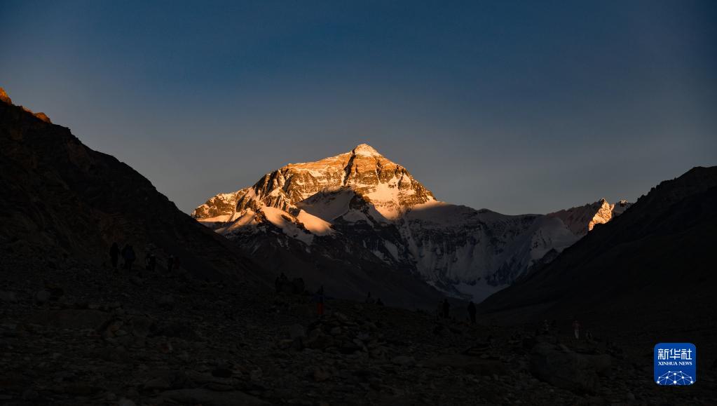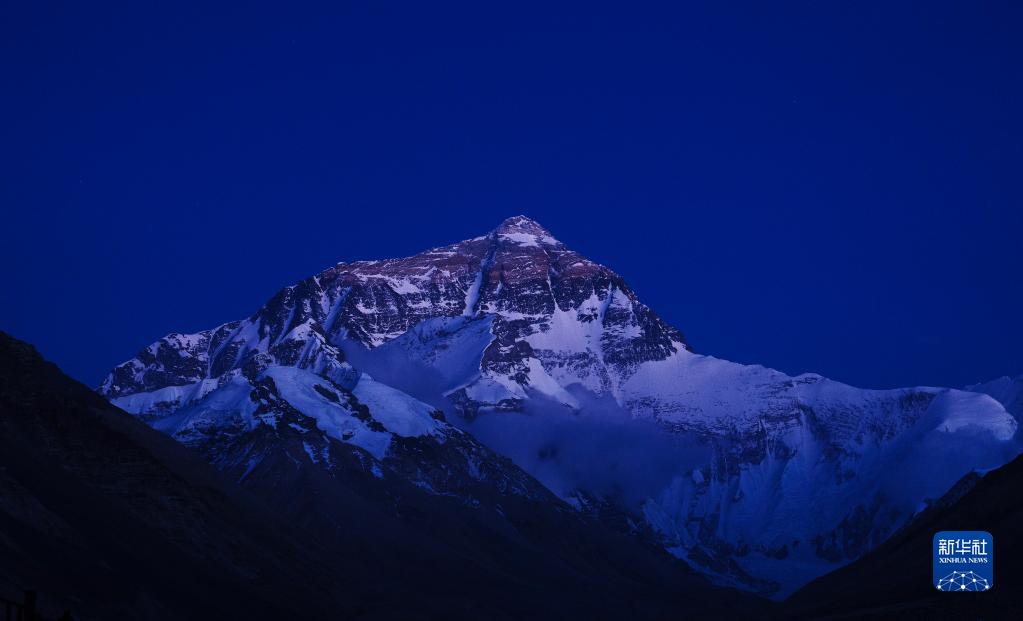6月4日,最后一抹陽光即將從珠峰頂上消逝。新華社記者 費茂華 攝