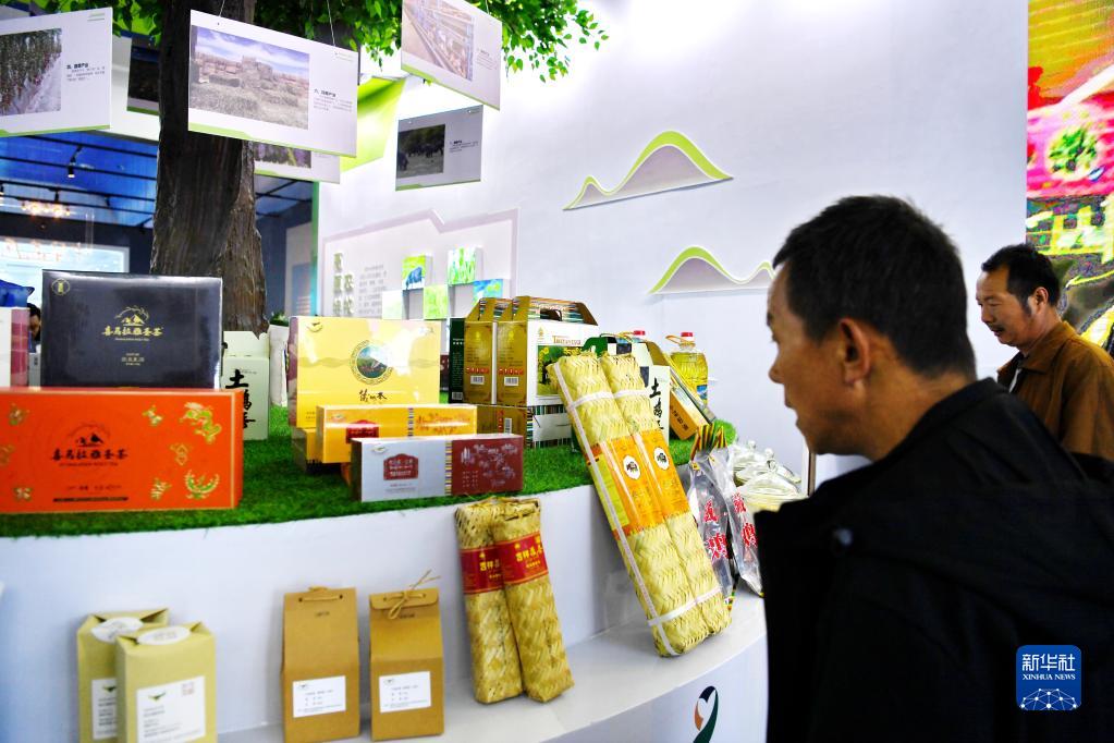 一名顧客在藏博會上挑選西藏本地商品(6月18日攝)。新華社記者 孫非 攝