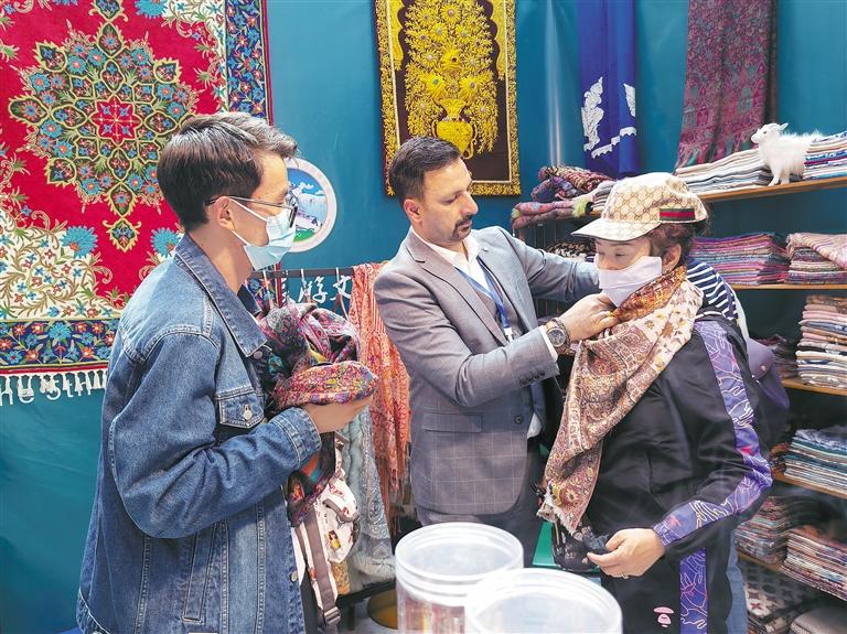 尼泊爾木碗、伊朗波斯地毯、巴基斯坦玉石……在2號館的國際精品展區(qū),每一個國家的展臺前都擠滿了熱情的市民?!耙恢倍己芟矚g伊朗的地毯,這次終于買到了,在藏博會買更便宜,真的很開心?!崩_居民扎西告訴記者。