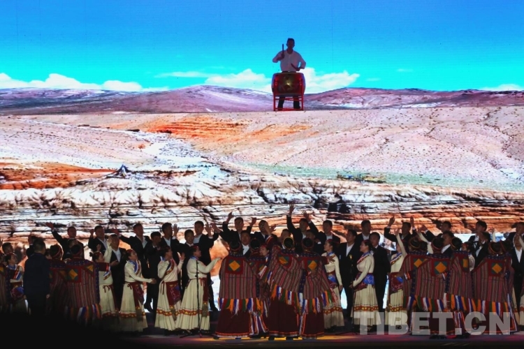 隨后盛大的開幕式文藝演出如期而至。演出共分為《悠遠古韻》《詩意微芒》《如炬經典》《輝煌盛世》四個篇章?!队七h古韻》篇章為大型情景表演,結合古格壁畫為開場表演,展現(xiàn)出阿里人民群眾的精神面貌和獨特的阿里神韻。《詩意微芒》匯集阿里地區(qū)諸多極具代表性的國家級非物質文化遺產節(jié)目,展現(xiàn)阿里地區(qū)悠久燦爛的古代文明遺存。《如炬經典》篇章通過不同舞蹈,展現(xiàn)阿里獨具特色的民間歌舞文化?!妒⑹老腋琛穭t展現(xiàn)了阿里地區(qū)以熱情昂揚的姿態(tài)在全力以赴推動建設雪域高原“西部明珠”中取得的一系列可喜的成績?! ?/p>