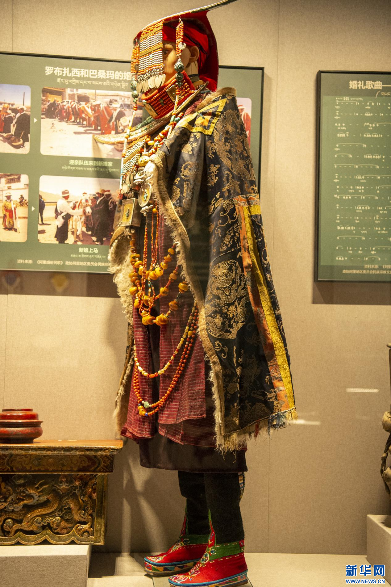 西藏阿里博物館展品,已有1000多年歷史的阿里普蘭縣“孔雀服飾”(8月23日攝)。新華網(wǎng) 旦增努布 攝