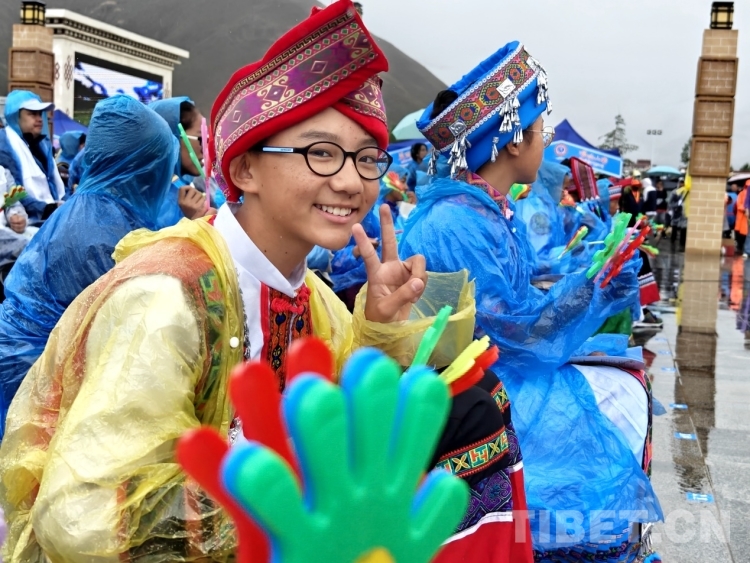 當(dāng)天上午,雨水時(shí)急時(shí)緩下著。當(dāng)?shù)孛癖姄沃鴤恪⑴暌略缭缏渥却莩鲩_始。白瑪次仁是附近的村民,他告訴記者:“我平時(shí)就喜歡唱歌和跳舞,所以收到有文藝演出的通知就早早過來觀看,畢竟平時(shí)很少看到如此大型的演出?!?/p>