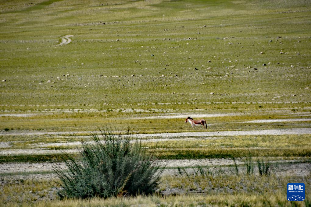 別若則錯周邊的藏野驢(8月25日攝)。新華社記者 劉文博 攝