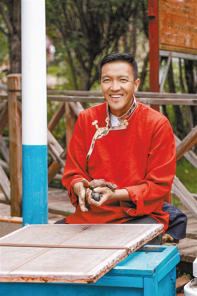 藏香傳統(tǒng)手工藝人在活動現(xiàn)場展示藏香制作過程。