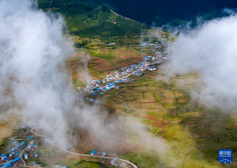 鳥(niǎo)瞰吉隆縣吉隆鎮(zhèn)乃村(9月12日攝,無(wú)人機(jī)照片)。新華社記者 姜帆 攝