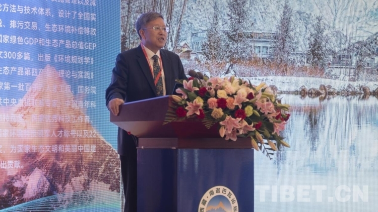 論壇上,第二次青藏高原綜合科學(xué)考察研究隊(duì)隊(duì)長,中國科學(xué)院青藏高原研究所名譽(yù)所長姚檀棟院士作了《第二次青藏高原綜合科學(xué)考察研究階段性成果服務(wù)西藏創(chuàng)建國家生態(tài)文明高地》的主旨報(bào)告。全國政協(xié)常委、人口資源環(huán)境委員會副主任,生態(tài)環(huán)境部環(huán)境規(guī)劃院院長王金南院士做了《建設(shè)美麗中國的西藏樣板,打造國際生態(tài)文明新高地》的主旨報(bào)告。