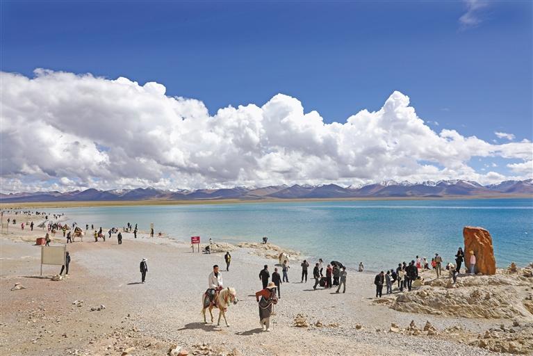 圖為游人在納木錯(cuò)觀光。記者 格桑倫珠 攝