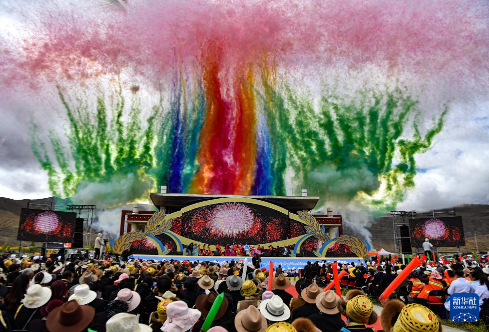 當(dāng)日,2023年西藏山南中國農(nóng)民豐收節(jié)暨隆子縣玉珞文化旅游節(jié)開幕式在隆子縣舉行。當(dāng)?shù)匚乃嚬ぷ髡邽楝F(xiàn)場數(shù)千名農(nóng)牧民觀眾獻(xiàn)上精彩演出,共慶豐收,歌頌家鄉(xiāng)?! ??