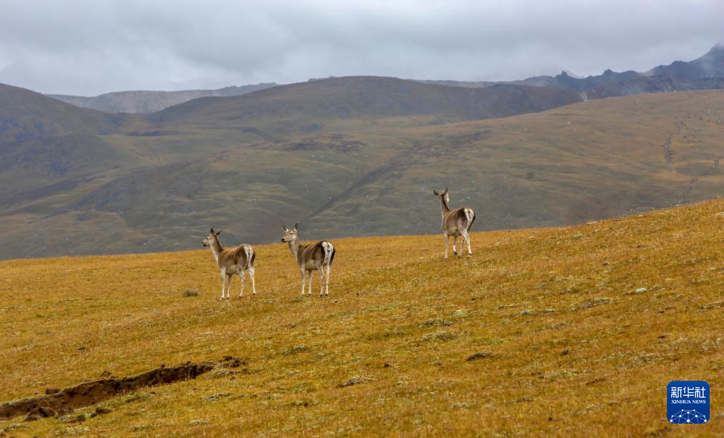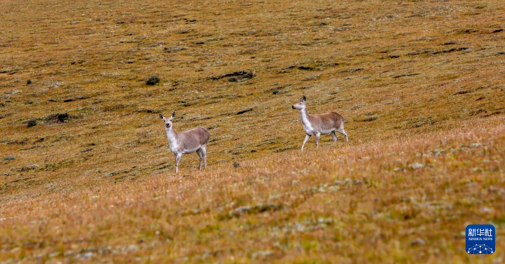 9月24日,幾只西藏馬鹿出現(xiàn)在位于西藏自治區(qū)山南市桑日縣的貢德林草原上。新華社記者 邵澤東 攝