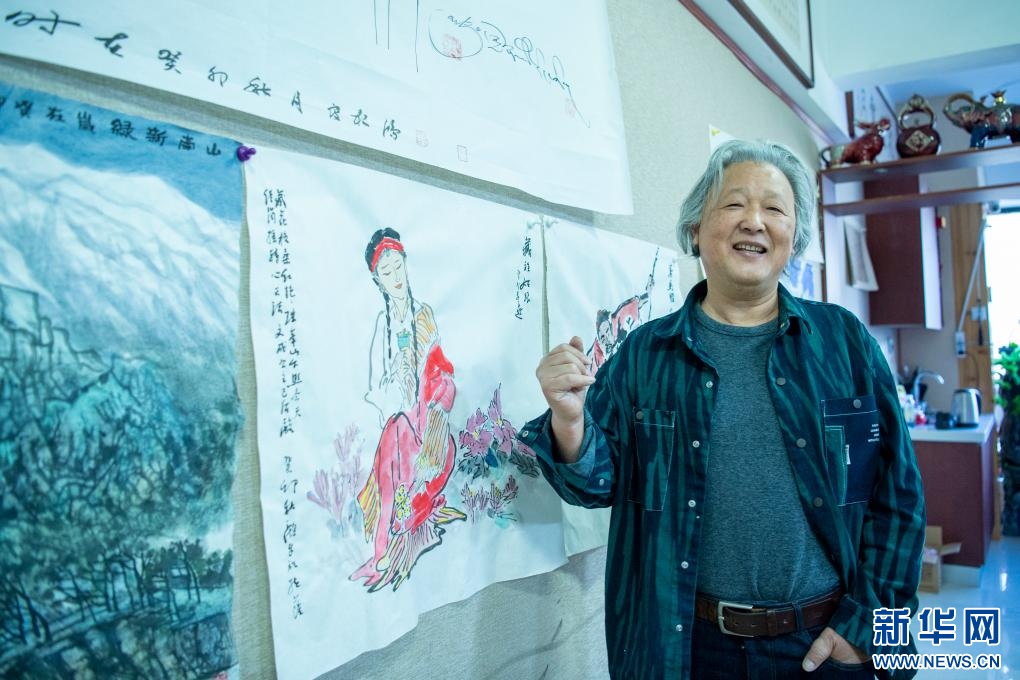 10月16日,畫家顧平在講述創(chuàng)作靈感。新華網(wǎng) 旦增努布 攝 ??