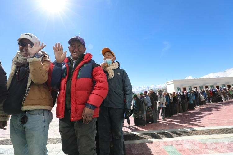 圖為在里孜口岸開通首日等待通關(guān)的群眾排起長(zhǎng)龍 攝影:郭遠(yuǎn)敬