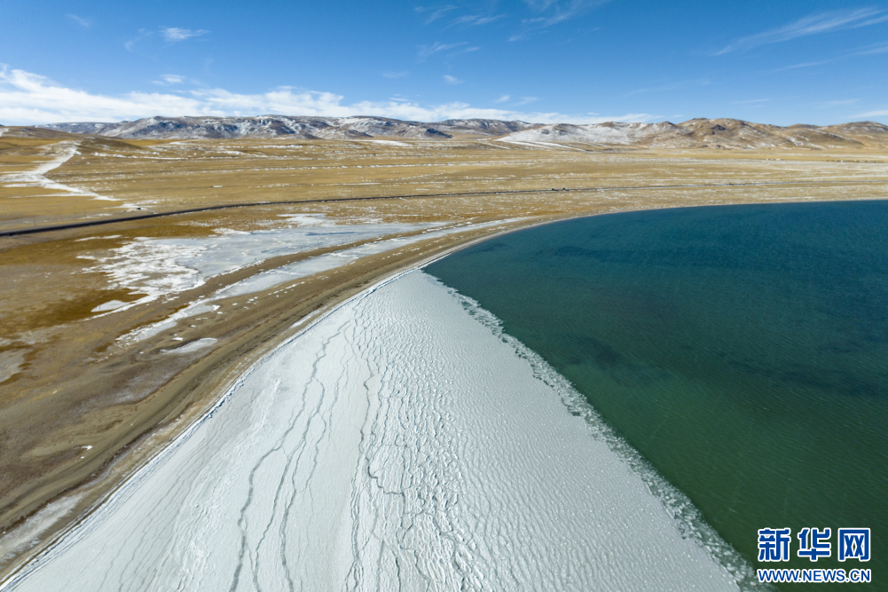 12月15日拍攝的蓬錯湖邊(無人機(jī)照片)。新華網(wǎng) 旦增努布 攝