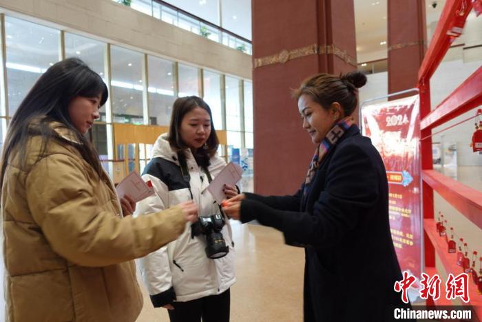 當(dāng)日上午,西藏博物館中央大廳聚集了許多參加現(xiàn)場活動的游客。游客以隨機(jī)抽福袋、領(lǐng)獎品的形式參與活動。參與者紛紛表示在新年的第一天開展這樣的活動很有意義。針對元旦期間來館參觀的游客,西藏博物館還制作有館藏文物元素的主題紀(jì)念賀卡供游客留念。