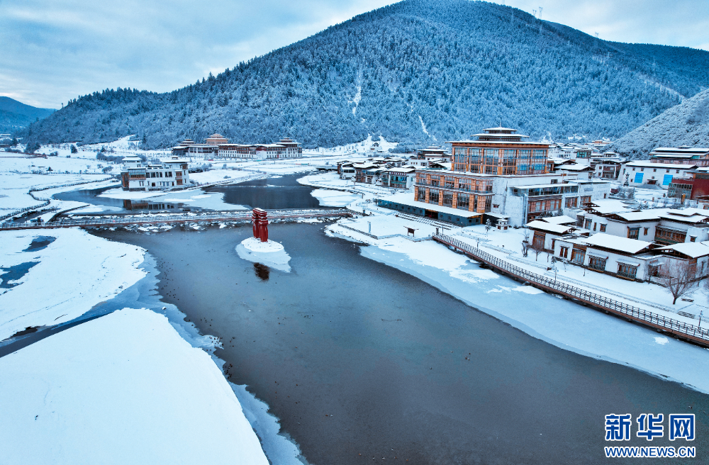 圖為1月3日雪后的魯朗國際旅游小鎮(zhèn)(無人機(jī)照片)。新華網(wǎng)發(fā) 姚力 攝