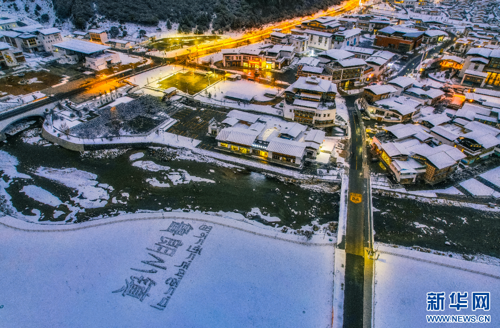 圖為1月3日夜幕初始的魯朗國際旅游小鎮(zhèn)(無人機(jī)照片)。新華網(wǎng)發(fā) 姚力 攝
