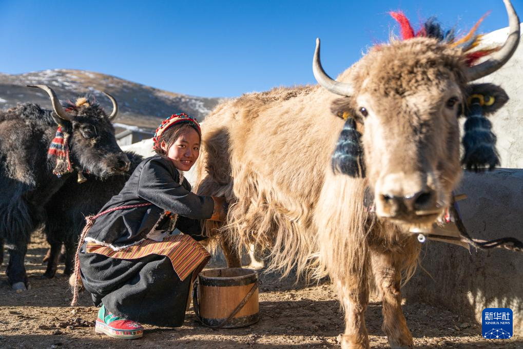 這是在參加擠牛奶比賽的思古龍村村民(1月13日攝)。新華社發(fā)(丁增尼達(dá) 攝)