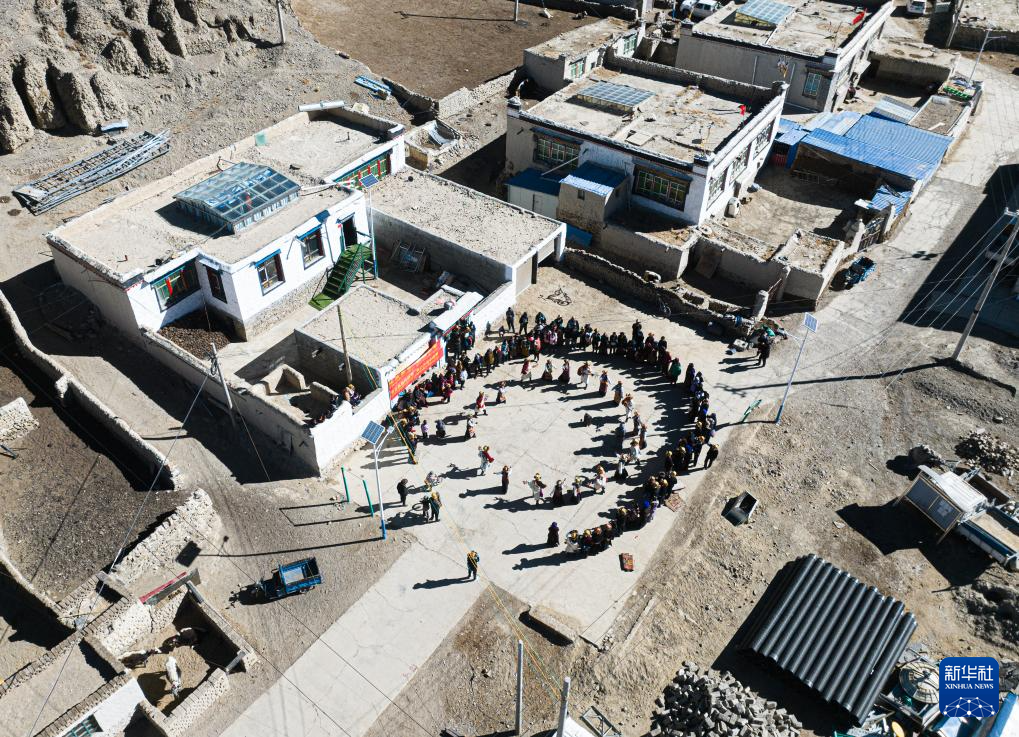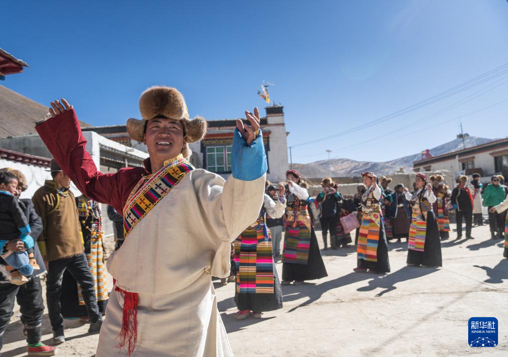 思古龍村的村民們在跳鍋莊舞(1月13日攝)。新華社發(fā)(丁增尼達(dá) 攝) ??