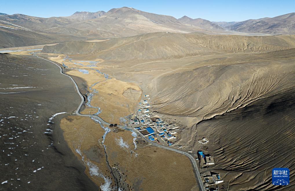 坐落于群山間的日喀則市白朗縣東喜鄉(xiāng)思古龍村(1月13日攝,無人機(jī)照片)。新華社發(fā)(丁增尼達(dá) 攝)