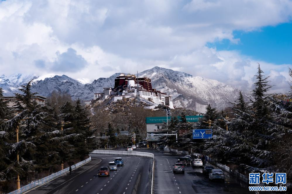 當(dāng)日是農(nóng)歷臘月初八,西藏拉薩市迎來降雪,城區(qū)銀裝素裹,雪景分外優(yōu)美,吸引了眾多市民外出拍攝游玩。