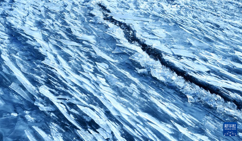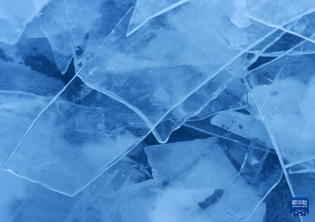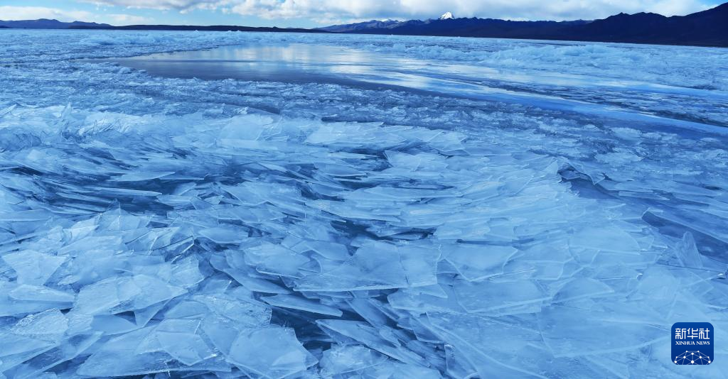 瑪旁雍錯湖面上的冰像碎玻璃一樣透亮(1月29日攝)。新華社記者 關(guān)明輝 攝  ??