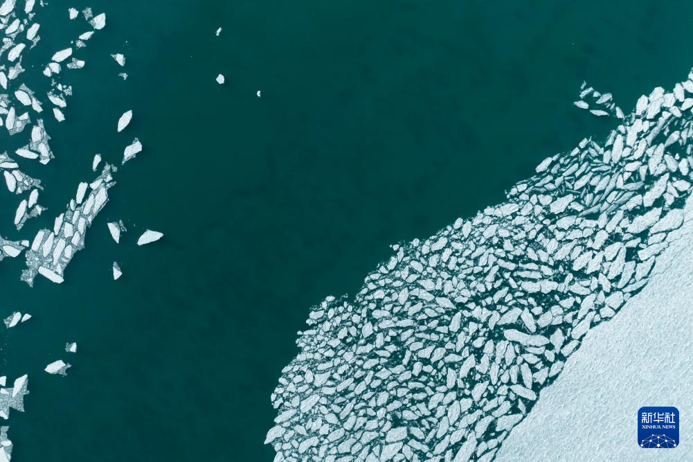 瑪旁雍錯湖面上的冰堆積在一起,呈現(xiàn)出各式各樣的造型(1月29日攝,無人機照片)。新華社發(fā)(旦增努布攝)  ??