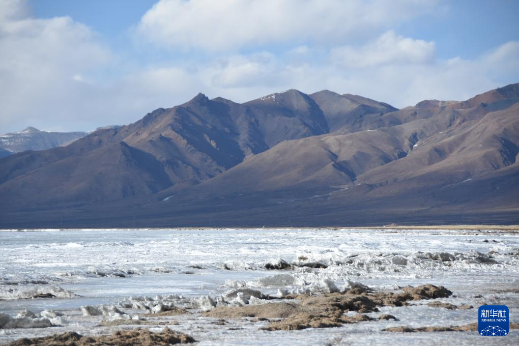 瑪旁雍錯湖面上的冰堆積在一起,形似波浪(1月29日攝)。新華社記者 關(guān)明輝 攝  ??