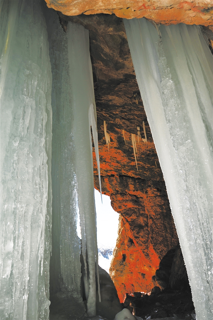 門莫溶洞在山頂,海拔4974米,有著世界上最高溶洞的美譽。望之可及,登則不易,最后幾百米碎石路尤險。溶洞呈豎井式,洞底深幽,直達地心深處;洞口開闊,一條條冰簾垂天際,透過山頂洞口遠觀地球之巔,仿佛我們這些“山頂洞人”透過這門莫之眼,也可參天地悟古今,瞬間將剛才登山的肺腑翻騰忘卻于腦后。