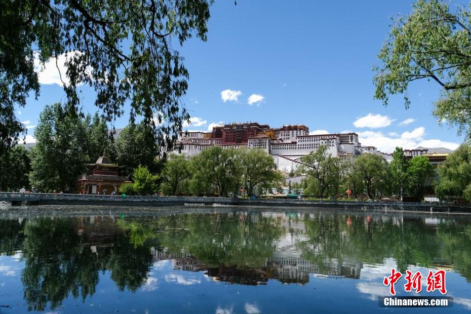 布達拉宮位于西藏自治區(qū)拉薩市紅山上,是一座古代宮堡式建筑群。布達拉宮先后被國務院公布為第一批全國重點文物保護單位,被聯(lián)合國教科文組織公布為世界遺產(chǎn)名錄。近日,高原入夏,布達拉宮周邊繁花盛開、綠柳成蔭,藍天白云下更顯秀麗。圖為5月28日,夏日鮮花與布達拉宮。