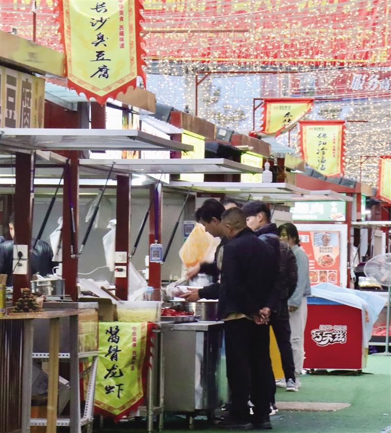 夜幕降臨,拉薩的街頭巷尾燈火璀璨如星辰,納金路萬達廣場的金街上,熱氣騰騰的煙火氣也在霓虹閃爍中氤氳出了熟悉的味道,美食為夜生活增添了不少驚喜。