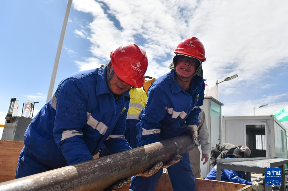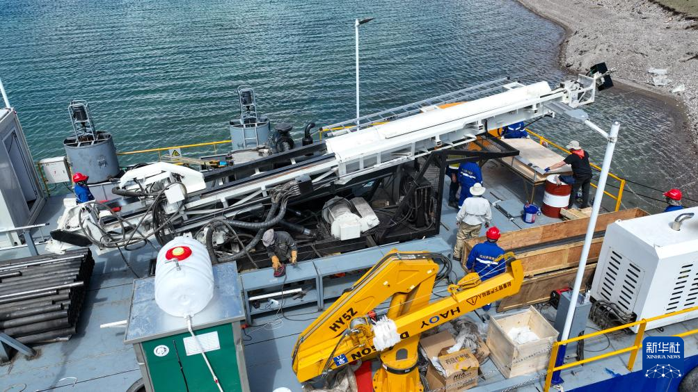 鉆探技術(shù)人員架設(shè)湖泊鉆探平臺(6月1日攝)。新華社記者 晉美多吉 攝
