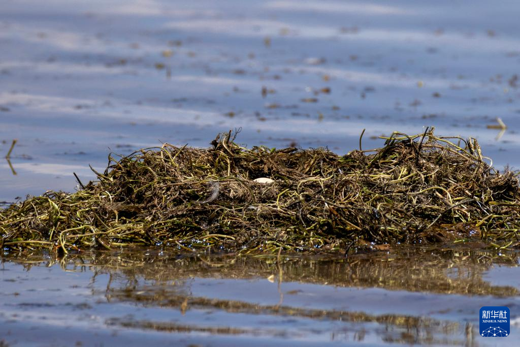 這是6月7日拍攝的鳳頭鸊鷉巢中待孵化的卵。新華社記者 姜帆 攝