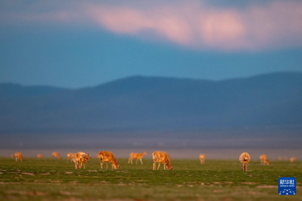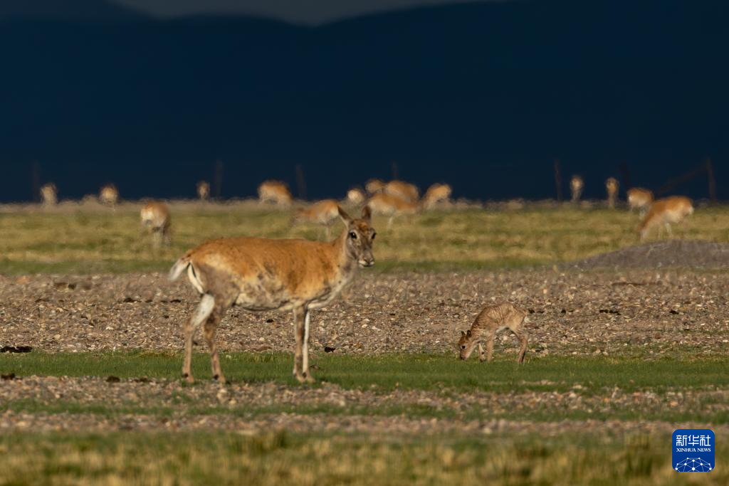 夕陽下,母藏羚羊在魯確塘草原上活動(dòng)(6月16日攝)。新華社記者 晉美多吉 攝