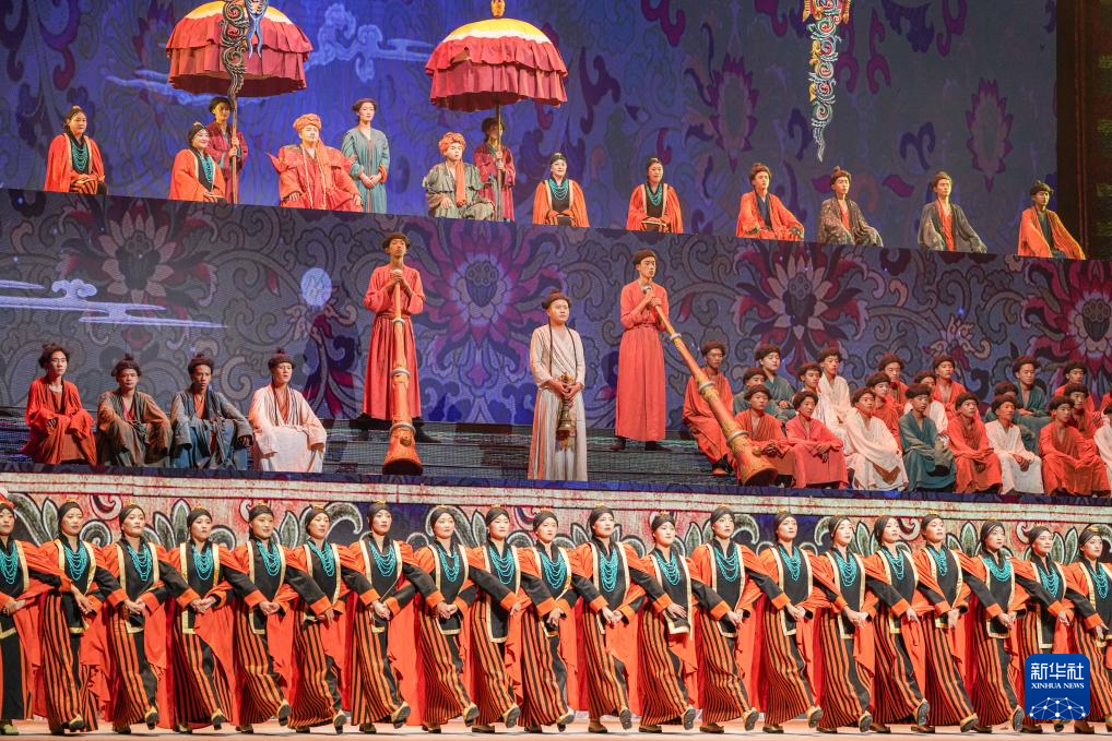 7月19日在西藏拉薩拍攝的《緣起象雄·古格遺風》情景歌舞詩演出現(xiàn)場。新華社發(fā)(格桑雍珍 攝)