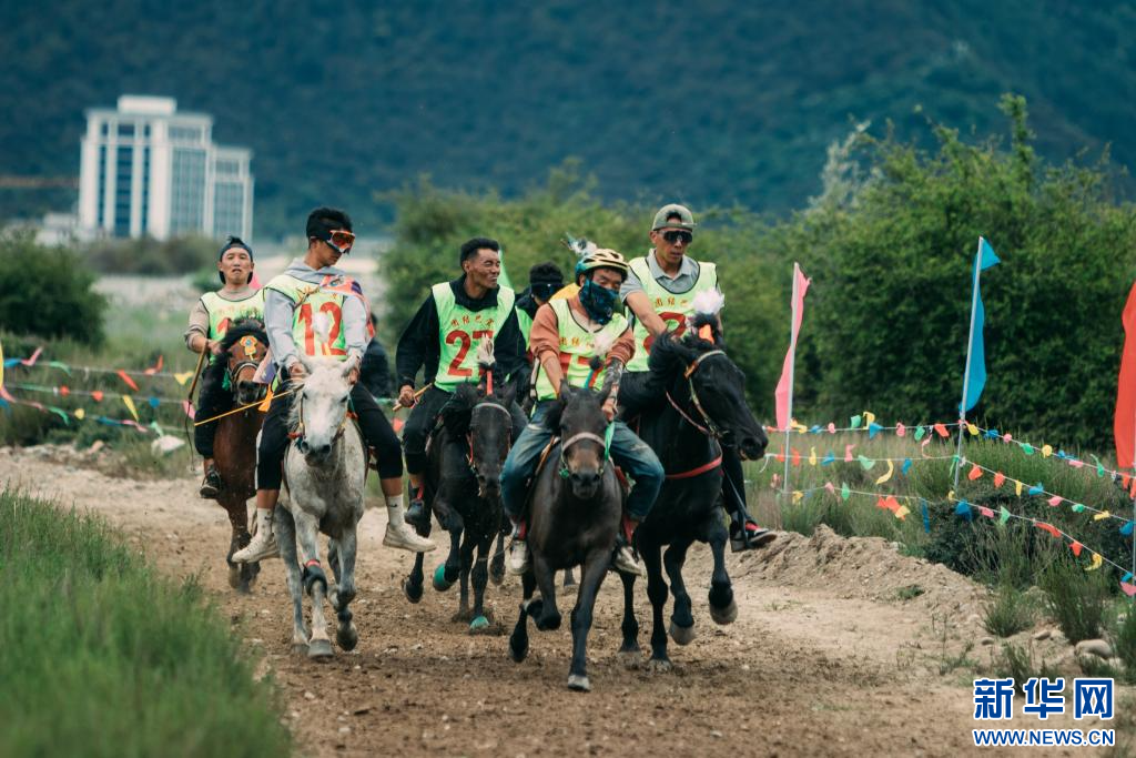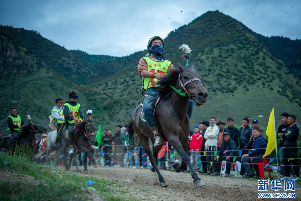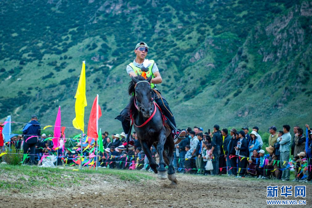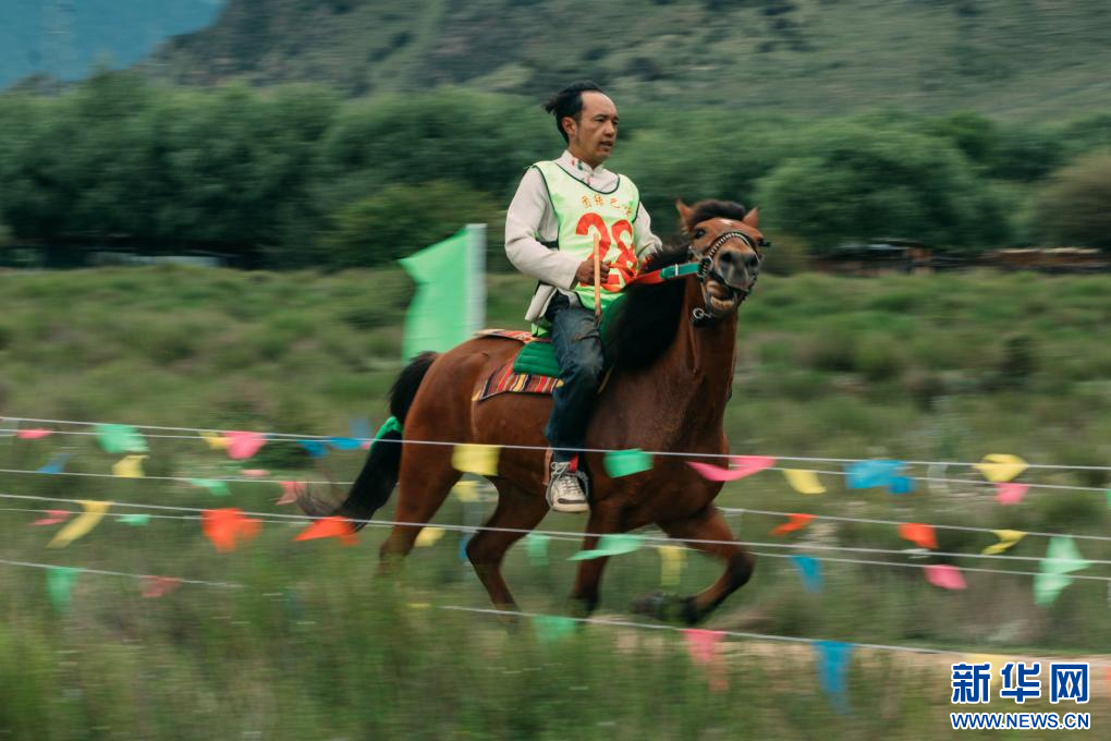 西藏林芝市林芝鎮(zhèn)第七屆尼洋旅游文化之民俗賽馬藝術(shù)節(jié)活動走馬比賽(7月22日攝)。新華網(wǎng) 旦增努布 攝