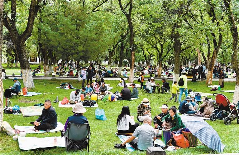 圖為市民群眾在羅布林卡過林卡。記者 旦增蘭澤 攝